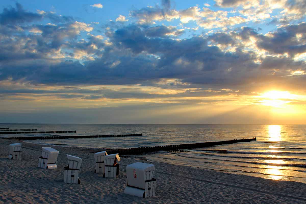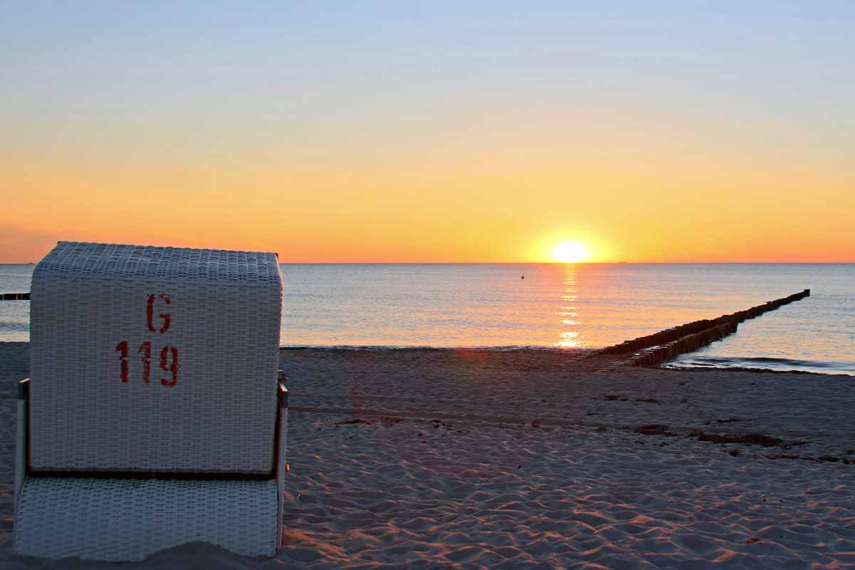 Im Ort hast du zahlreiche gute Zugänge zum Weststrand, der an dieser Stelle auch mit dem Auto erreicht werden kann und teilweise mit Strandkörben bestückt ist. Vor allem bieten sich die Strandzugänge in Ahrenshoop an, wenn du dir den Sonnenuntergang ansehen möchtest. Falls du nicht selber mit einem Drink am Strand sitzen magst, kannst du dies auf der Terrasse des Hotel-Restaurant Namenlos machen. Da die Terrasse erhöht in der ersten Etage liegt, blickst du von dort über die Düne und kannst so den Sonnenball im Meer versinken sehen, während du einen leckeren Sundowner schlürfst. Selbstverständlich kannst du in dem zur Relais & Chateau Gruppe gehörenden Restaurant auch vorzüglich speisen.