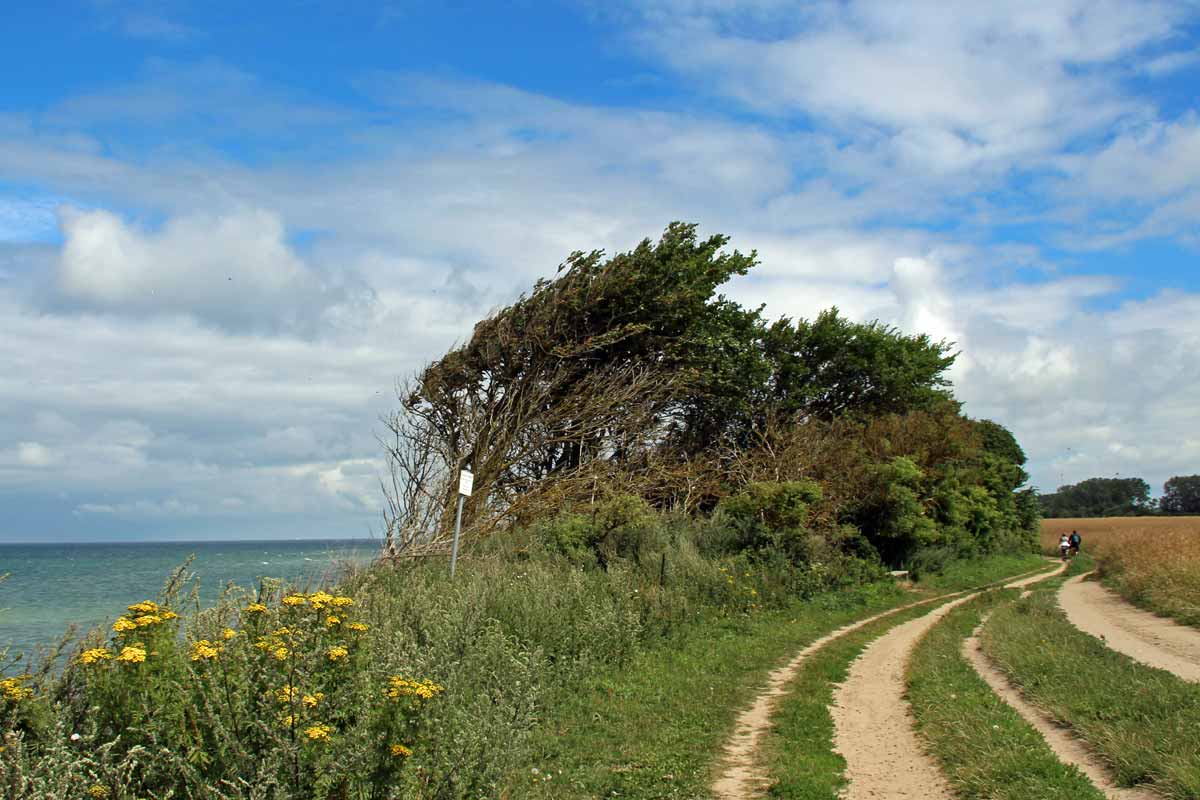 Berühmt ist der Darß unter anderem für seinen wilden Weststrand, der am Leuchtturm beginnt und sich nach Süden 13km bis zum Fischerdorf Ahrenshoop zieht. Dieser Strand, der laut einem Bericht des Fernsehsender Arte aus 2007 zu den 20 schönsten Stränden der Welt gehört, ist völlig naturbelassen und nur zu Fuss oder per Rad erreichbar. Es gibt keine Buden oder Strandkörbe, nur das, was die Natur in den letzten Jahrhunderten geschaffen hat: Treibgut, Muscheln und die bizarr geformten Windflüchter, Kiefern die sich wegen der starken Westwinde verformt haben. Die Wellen prallen hier ungebremst aufs Land und so entsteht eine Wildheit, die ihresgleichen sucht. Du kannst hier gut und gerne den ganzen Tag verbringen, aber denke dran genug Wasser und Proviant mit zu nehmen, da du weit und breit nichts kaufen kannst. Von hier ist es per Rad ca. 5-7km zurück nach Born.