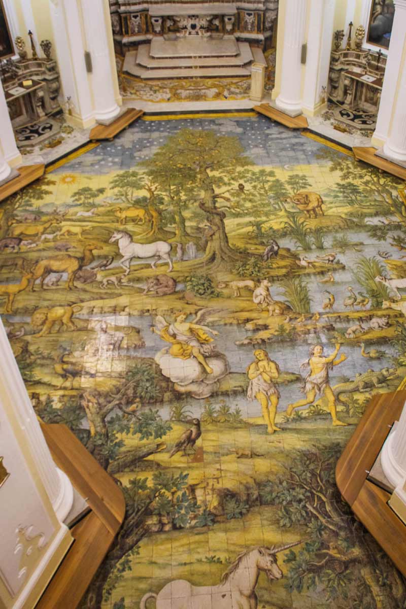 Schlendere weiter bis zu Chiesa di San Michele. Hier findest du einen kunstvollen Fußboden aus reich bemalten Majolika-Fliesen aus dem 18.Jahrhundert, welcher die Vertreibung von Adam und Eva aus dem Paradies darstellt. Um den Boden in seiner ganzen Vielfalt zu sehen, musst du auf die obere Empore steigen.