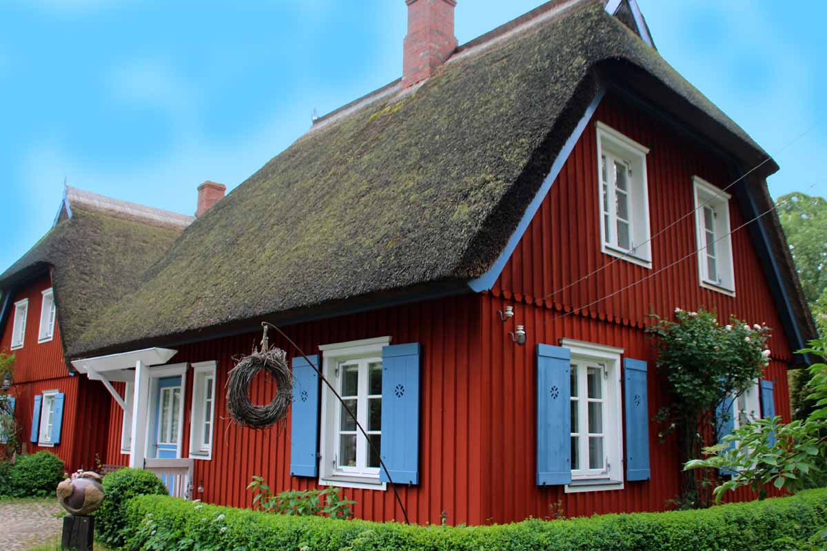 Als Ausgangspunkt empfehle ich dir den Fischerort Born am Bodden. Er liegt so ziemlich in der Mitte des Darß und von hier aus lassen sich alle anderen Ziele leicht auf sternförmigen Touren erreichen. Born ist ein beschauliches kleines Fischerdorf mit vielen alten, reetgedeckten Häusern mit wunderschön bemalten Haustüren. Bei einem Spaziergang durch den Ort lohnt es sich einen Blick in die hölzerne Fischerkirche zu werfen. Außer einer Bäckerei und einigen Künstlergalerien gibt es nicht viel in Born, aber du wohnst sehr ruhig und genießt von vielen Häusern einen herrlichen Blick auf den Bodden. Familien mit Kindern können den Kletterwald oder den Erlebnis-Bauernhof Gut Darß besuchen. Der Reiterhof Kafka bietet Ponyreiten, Ausritten und Kutschfahrten an.