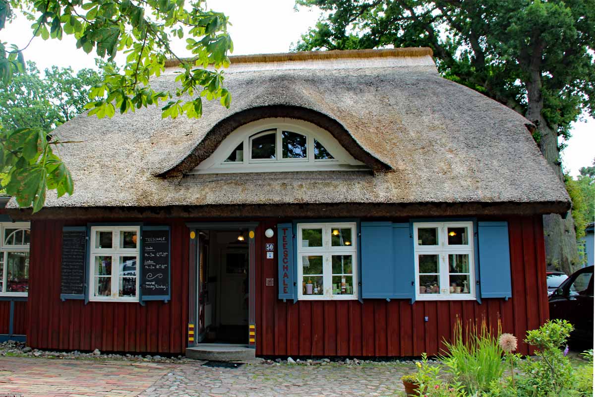 Ahrenshoop ist der bekannteste und auch schickste Ort auf dem Darß. In den vielen bunten Kapitänshäusern und Fischerkaten sind heute Galerien und Kunstateliers untergekommen. Ein großes Kunstmuseum am Eingang des Ortes ist den vielen örtlichen Künstler gewidmet, die hier im Laufe der letzten Jahrhunderte gelebt und gewirkt haben. Aber Ahrenshoop punktet auch mit netten kleinen Geschäften, dem mondänsten Hotel der Halbinsel und vielen Restaurants und Cafés. Mein Lieblingslokal ist das Hotel-Restaurant Ginger an der Hauptstrasse. Auf der schönen Terrasse sitzt du unter großen Sonnenschirmen gut geschützt. Die Küche bietet von Kuchen, über Pasta, Salaten, Fisch und Fleisch eine große Auswahl an Speisen an. Im Sommer gibt es Donnerstags immer ein Barbeque mit Livemusik.