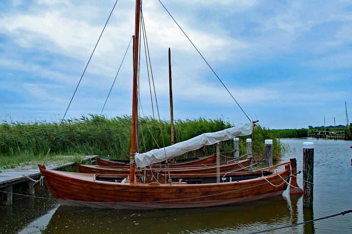 Wenn du magst unternimmst du hier eine Zeesbootsfahrt entlang der grünen Ufer des Boddens. Es gibt zahlreiche Angebot für Touren auf den alten Fischerbooten. Oder du wanderst ein bisschen entlang des Ufers über unbefestigte Wege nach Barnstorf, ein kleines Weiler am Bodden mit zahlreichen alten Reetdach-Höfen, die heute zu Ferienhäusern umgebaut wurden. Dort findest du die Kunstscheune, eine alte Hofscheune die heute den örtlichen Künstlern als Ausstellungsort dient.