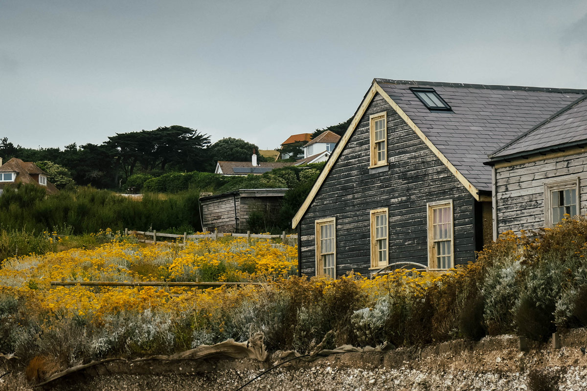 Vom Eastbourne Pier aus wandern wir die Strandpromenade stadtauswärts Richtung Westen. Nachdem wir die Western Lawns hinter uns gelassen haben, wird es ruhiger und die Strände schmäler. Nach einiger Zeit erreichen wir das Ende der Promenade und wir stehen vor einige flachen weißen Holzgebäuden mit hübschen Veranden. Sie sehen fast wie kleine Cottages aus, die man wunderbar mieten könnte um Urlaub am Meer zu machen. Leider ist dem nicht so. Sie stehen leer.