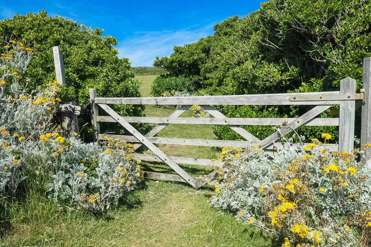 Vor uns und um uns nur weites Grün mit flachen Büschen und Wildblumen. Wir folgen weiter dem grasbewachsenen Trampelpfad. Google hilft uns bei jeder Weggabelung. Etwa 4 Kilometer geht es so über die sanften Hügel, manchmal mit Sich auf das Meer. Als Zielmarke haben wir das Pub „The Beachy Head“ markiert.