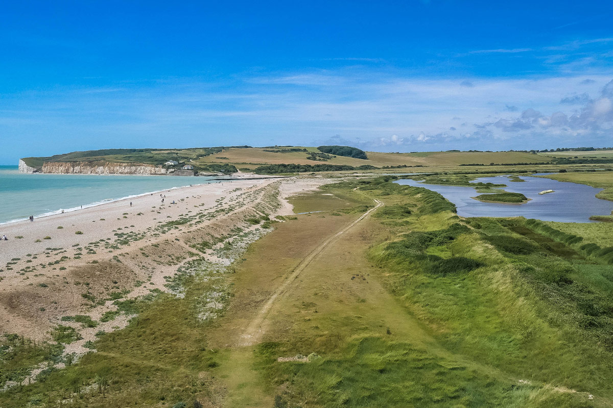 Hier direkt am Strand gibt es keine Gastronomie, aber dennoch ist es ein schönes Plätzchen für ein Sonnenbad. Da der Fluss den Strand teilt, musst du einen Umweg laufen um dem Küstenpfad weiter zu folgen. Wir beenden allerdings unsere Wanderung hier und folgendem dem Flusslauf noch etwa 20 Minuten zur Hauptstraße, wo auch das Seven Sisters Park Center ist. Dort gibt es eine interessante, kleine Ausstellung über die Region, als auch ein Café, Kiosk, Toiletten und Parkplätze. Auch der Bus nach Brighton oder Eastbourne fährt hier ab.