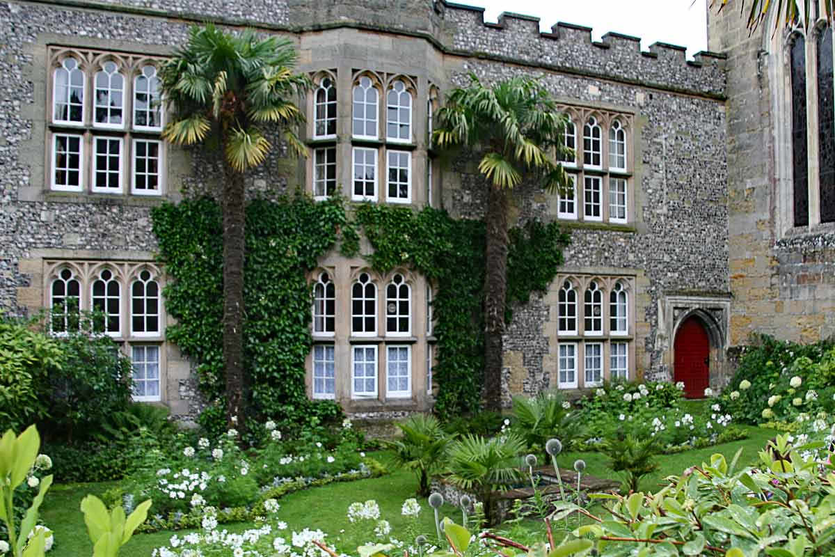 Wir fahren weiter durch die ⇒South Downs in die Stadt Arundel, wo wir einen Abstecher in das alte Kastell des Duke of Norfolk machen. Die mächtige Burg, die zu den besterhaltensten Anlagen aus dem Mittelalter zählt, thront auf einem Hügel oberhalb der kleinen Marktstadt am Fluss Arun. Zu dem Schloss gehört die bekannte Fitz-Allan Kapelle, die in der Mitte durch eine Wand geteilt ist, sowie ein großer Barockgarten im französischen Stil.