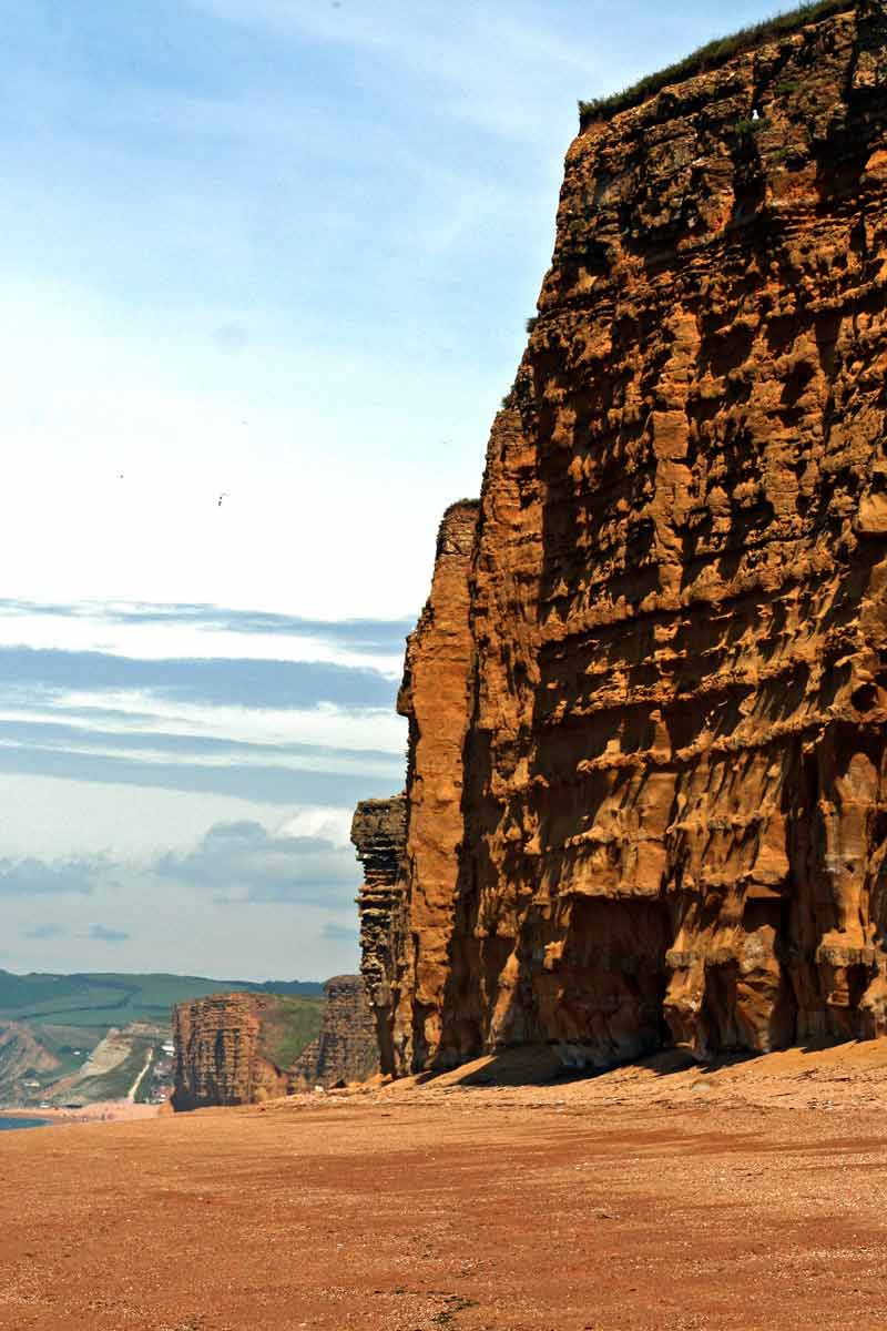 Jetzt hast du dir eine Pause am Meer verdient und deshalb fahren wir noch ein kleines Stück weiter an die Jurassic Coast, einer der Gegenden, die im Englischen gerne „Area of outstanding natural beauty“ (AONB) genannt werden. Die Jurassic Coast (Jura Küste) ist ein 150km langer Küstenstreifen an Englands Südküste durch Dorset und Devon, dessen steile Felswände wegen ihrer beeindruckenden Formationen und zahlreicher Fossilienfunde berühmt sind. Seit 2001 gehört dieser Küstenstreifen zum UNESCO Weltkulturerbe. Chesil Beach ist nicht der berühmteste Teil, aber ein durchaus sehenswerter und dafür nicht so überlaufener Bereich der Jurassic Coast. Jedoch warte Chesil Beach mit einer geologischen Besonderheit auf, denn der Küste ist eine 20km lange Kieselbank vorgelagert und bildet mit dem Land eine Flutlagune, an der sich starke Strömungen und Wellen brechen. Hier kannst du zwar nicht baden, aber an der Felskante entlang wandern und dir die fantastischen Felsformationen ansehen.
