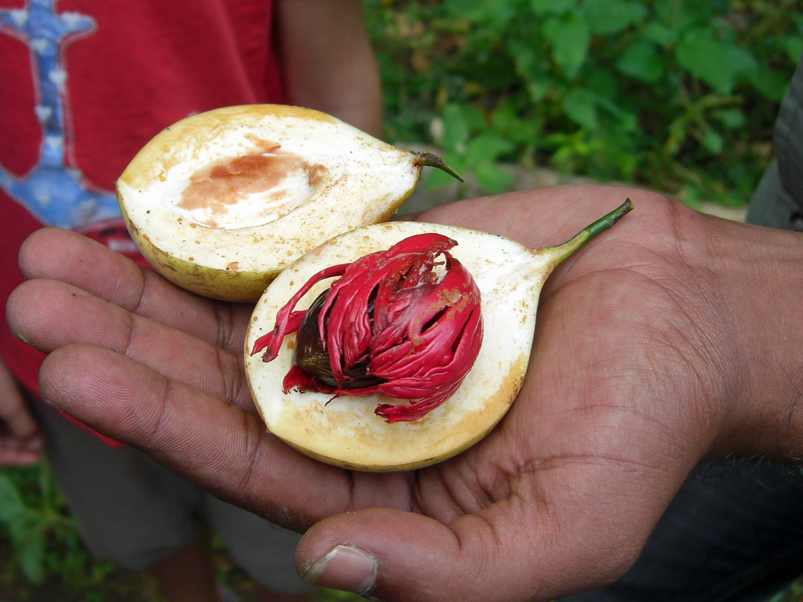 Unser Ziel ist erst einmal einer der vielen Gewürzgärten, wo uns unser lokale Führer Nihil die ganze Bandbreite der heimischen Gewächse zeigt. Wir riechen an der Rinde des Zimtbaum, schälen eine Muskatnuss, zerkrümeln Nelken, pusten Seifenblasen aus der Seifenblasenblume und schnuppern an Ingwer, Kardamon und Kaffee. Obwohl wir fast alle diese Gewürze kennen, ist es doch eine interessante Erfahrung zu sehen, wie sie wachsen und wobei sie die Gesundheit unterstützen. Eine Essenz aus Muskatnuss mit heißem Wasser z.Bsp. hilfreich bei Pickeln. Nihil ist sehr kundig und geht sehr nett auf die Kinder ein, die diesen Besuch sehr genossen haben.