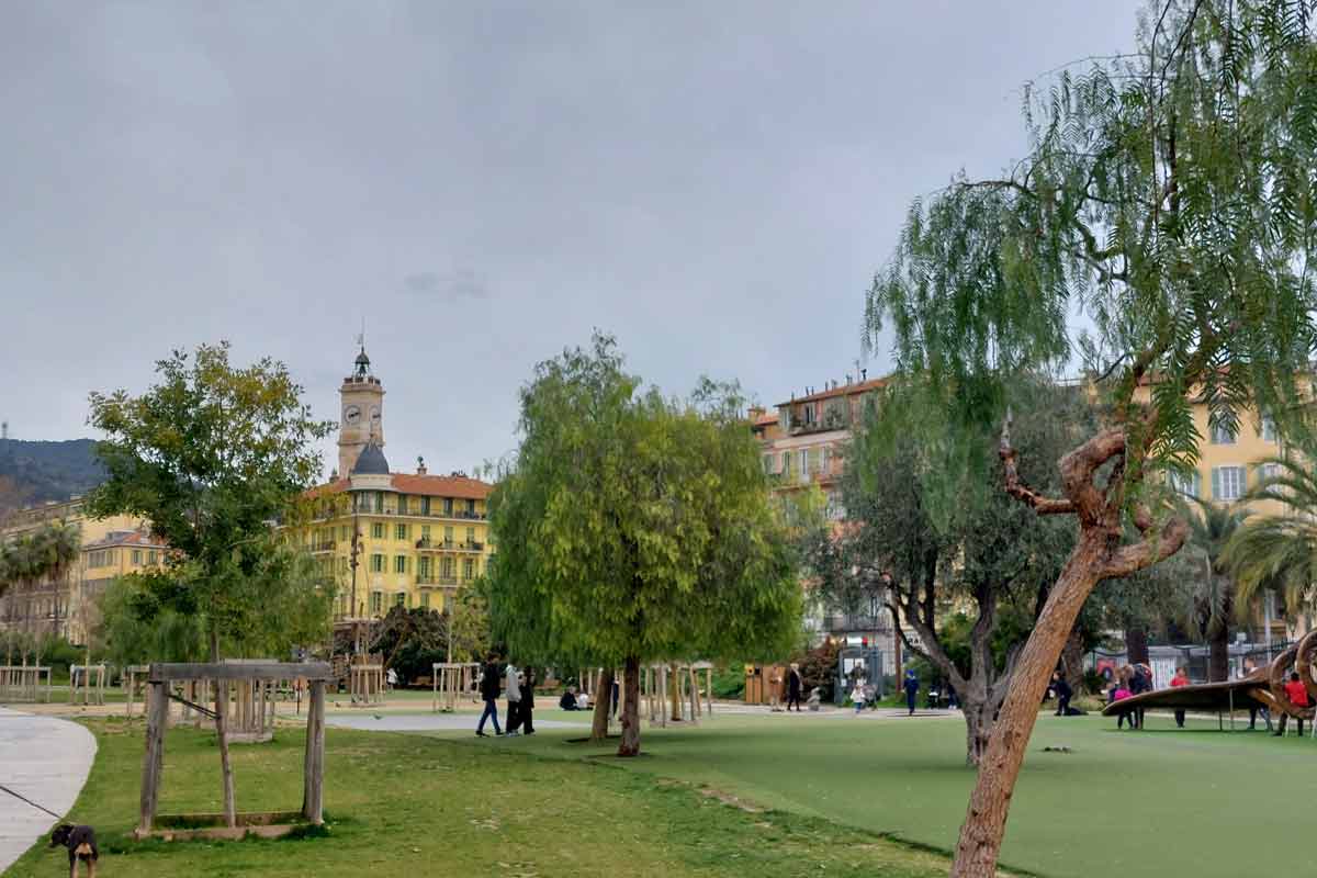 Direkt vor dem Mamac beginnt die Promenade de Paillon, ein grosszüger Grünstreifen, der von der Place Garibaldi über die Place Masséna bis zum Jardin Albert I. einen attrativen Park mit Spielplätzen, Bänken und Wasserspielen bildet. Die Promenade ist die grüne Lunge des Zentrums und Ruhepol für viele Berufstätige in der Mittagspause. Das Fundament dieser Grünanlage bildet der Fluss Paillon, der bereits in den 1830er Jahren überbaut wurde. Das Wasser des Flusses speist aber heute noch die Fontaine du soleil an der Place Masséna und auch die Wasserspiele auf der Promenade de Paillon.