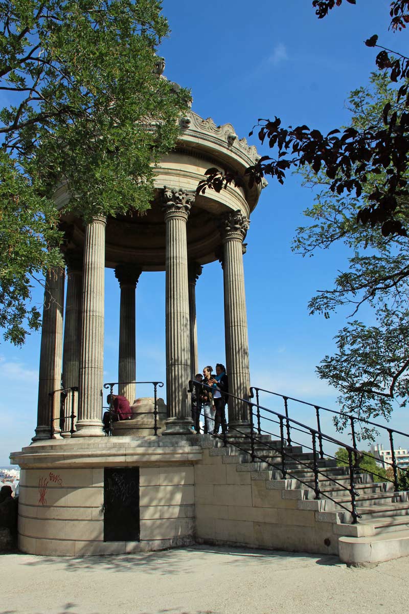Heute dient er den Stadtbewohnern als Freizeitoase. Von dem auf einem hohen Felsen gelegenen Rundtempel hast du einen wunderbaren Blick auf Sacre Coeur und die umliegende Stadt. Im Park selber gibt es mehrere Kioske und zwei Cafés. Bekannt ist das Rosa Bonheur, mir hat Le Pavillond du lac besser gefallen. Hier sitzt du mit Blick auf die Hängebrücke und den See. Ein wirklich romantischer Ort.