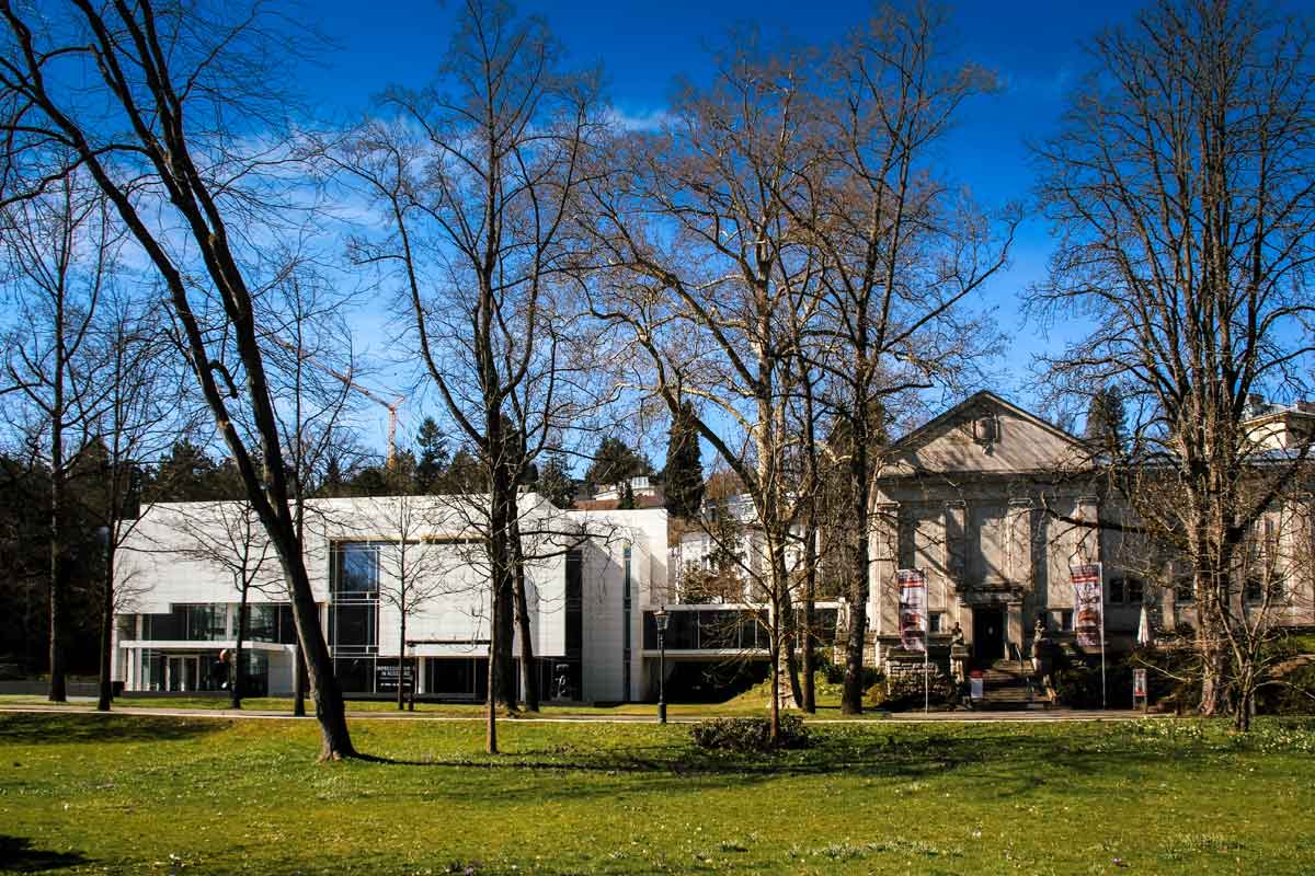 Bald schon triffst du auf der Parkseite auf die staatliche Kunsthalle und den futuristischen Bau des Frieder Burda Museum. Die beiden Museen sind durch einen gläsernen Übergang verbunden. Das Frieder Burda Muesum, welches vom amerikanischen Stararchitekten Richard Meier erbaut und 2004 eröffnet wurde, beherbergt neben wechselnden Ausstellungen auch eine große Sammlungen von Bildern, Skulpturen und Fotografien der modernen und zeitgenössischen Kunst. Genaue Infos zu den aktuellen Ausstellungen und zu den Öffnungszeiten und Preisen erfährst du auf der Museumshomepage.