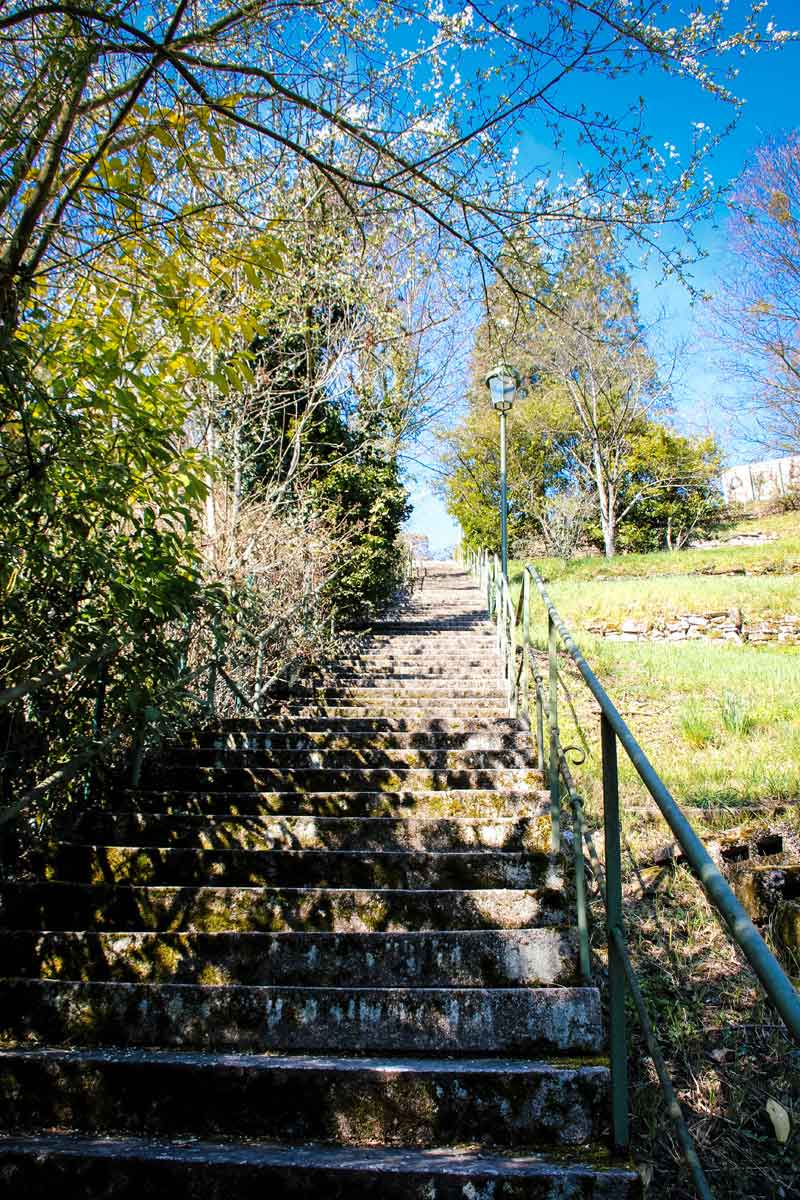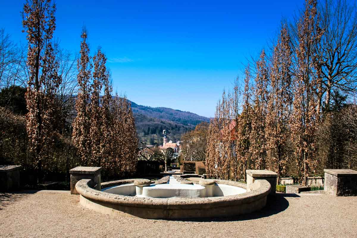 Die Park- und Wohnanlage Paradies entstand in den frühen 1920er Jahren und wurde schon damals als ein Projekt der Sorte „Schöner Wohnen“ verstanden. Über drei Straßenzüge erstreckt sich diese Grünanlage mit herrschaftlichen Villen, deren zentrale Achse eine Wassertreppe ist, die beginnend mit einer Brunnengrotte über 40 Höhenmeter und zahllosen Becken ihr Wasser in die Tiefe fließen läßt. Der Aufstieg hierhin hat sich gelohnt, denn er schenkt dir einem wunderbaren Ausblick auf Baden Baden und die umliegenden Hügel. Gönne dir am Rand der Wasserbecken und der schönen Bepflanzung eine kleine Ruhepause und genieße den Blick auf die Stadt. Den anstrengensten Teil hast du jetzt geschafft.